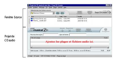 - Ajoutez les fichiers audio à enregistrer dans le projet de CD audio.