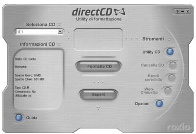 Viene visualizzata la finestra principale di DirectCD nella quale è possibile avviare la formattazione di un CD su cui copiare in seguito i file selezionandoli e trascinandoli.
