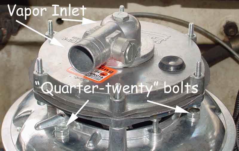 Once you have the Propane Mixer installed in a way agreeable with the cam cable, you will probably find that the orientation of the Vapor Inlet is incorrect.  In this situation, you will have to reorient the Vapor Inlet.  Fortunately, changing the orientation of the Vapor Inlet is pretty easy and painless.  Just undo the 3 screws that hold the Vapor Inlet to the Propane Mixer, reorient the Vapor Inlet, and then screw it back down.  In my case one of the screws was buggered up, so I simply replaced it with one from my screw bin.  One of the great things about this kit is it uses all SAE nuts, bolts and screws.  So finding extra screws isn't a problem.